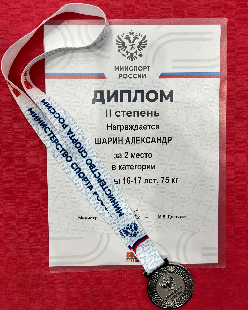 Шарин Александр провел 5 поединков, в 4-х из них одержал победу. Продемонстрировал великолепную подготовку, пройдя через несколько сложнейших схваток и с честью вышел в финал. Наш земляк завоевал серебряную медаль в весовой категории до 75 кг среди юношей 16-17 лет!