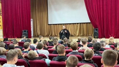 14 октября в Динском механико-технологическом техникуме состоялась встреча учащихся с клириком Троицкого храма, помощника благочинного 14-го округа по окормлению вузов и ссузов иереем Георгием Беланом. Тема беседы была одновременно и глубокой, и очень практической: «Как строить свою жизнь на основе добра и защитить себя от негатива».