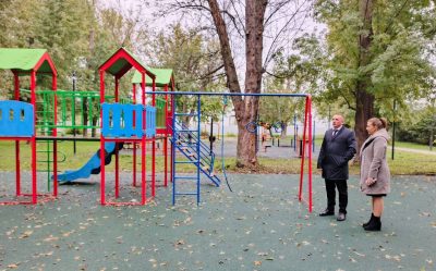 На сегодняшний день работы в парке практически завершены: выполнены работы по устройству основания, уложено резиновое покрытие, установлена детская игровая площадка, смонтировано видеонаблюдение. Финальный этап — установка лавочек и урн.