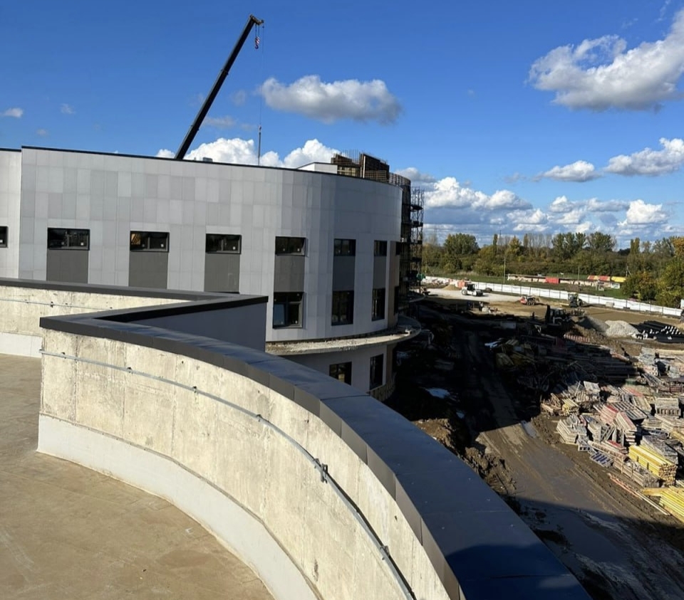 В среднем в смену на стройке работает 395 человек, задействовано 10 единиц техники. На данный момент работы выполнены на 55%. Строительство планируется завершить весной 2026 года.