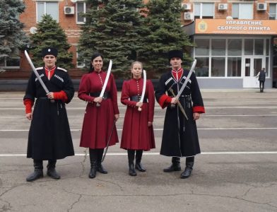 В мероприятии приняли участие представители казачьего взвода Динского механико-технологического техникума Илья Слюсарев и Сергей Пересекин.