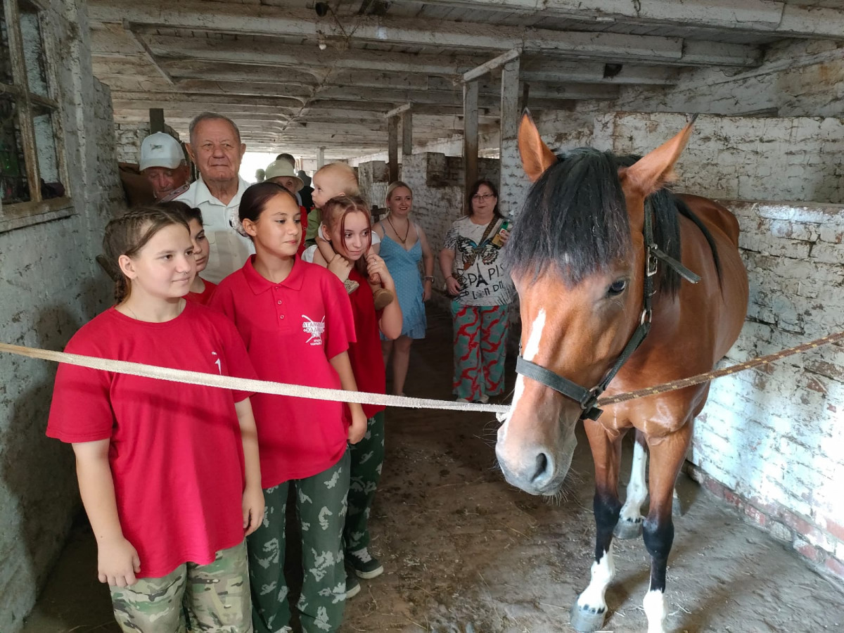 Важным моментом стало и то, что наши кадеты в сопровождении родителей и казака-наставника совершили обзорную экскурсию по конноспортивному клубу Марьинского хуторского казачьего общества. Участницы группы «Лихие казачата» со школьниками других районов края ознакомились с породами лошадей. А Александр Любуцин, атаман местного хуторского общества, подробно отвечал на интересующие вопросы ребят, познакомил их с тонкостями общения с животными.