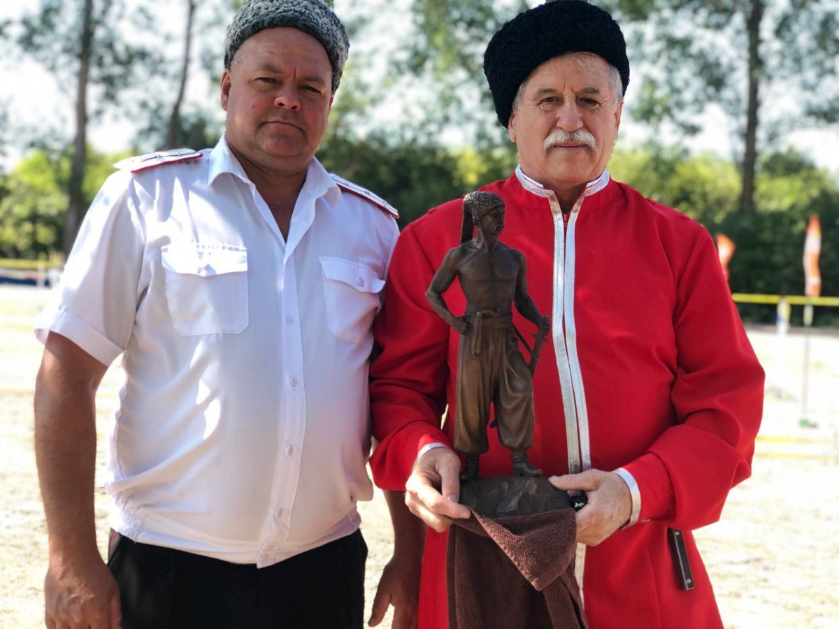 Затем начались состязания на главный приз – бронзовую скульптуру «Черноморец на Кубани», которую предоставил Николай Раськов, участник чемпионата, член Союза художников России, Заслуженный художник Кубани, автор многих памятников и композиций, казак Динского районного казачьего общества.