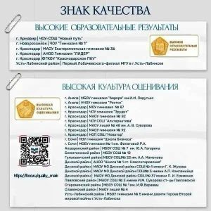 СОШ № 4 имени Г. К. Жукова, СОШ № 5 имени А.П. Компанийца, СОШ № 37 имени П.И. Еременко и АНОО “Школа № 1 ст. Новотитаровская” вошли в число 22 образовательных организаций Краснодарского края, получивших эту награду.