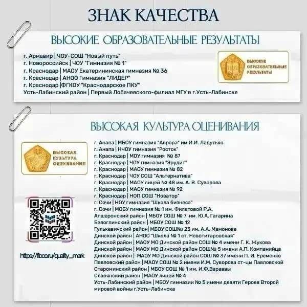 Всего в федеральный список школ с высокими и объективными результатами по оценочным процедурам вошли 28 образовательных организаций Краснодарского края: