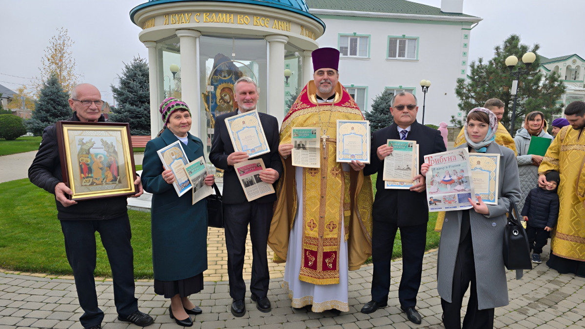 В связи с 20-летием православной газеты «СИМВОЛ ВЕРЫ» и «За усердные труды во славу Святой Церкви Екатеринодарской и Кубанской епархии» Архиерейских грамот удостоились основатель и редактор газеты благочинный протоиерей Иоанн Лапко, главный редактор Динской районной газеты «Трибуна» Виталий Николаевич Ушков, корреспондент «СИМВОЛА ВЕРЫ» Евгений Романович Каяцкий, корректор Валентина Петровна Калинина, верстальщики Оксана Юрьевна Чамовских и Марина Евгеньевна Чунта.