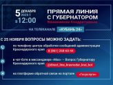 – Традиционно в конце года общаюсь с жителями региона в прямом эфире «Кубань 24». В этот раз «Прямую линию» проведем 5 декабря. Специалисты начнут принимать вопросы с завтрашнего дня – 25 ноября. Ни одно обращение не останется без ответа. Даже те, которые не успеют прозвучать в прямом эфире, изучим и возьмем в работу, – отметил Вениамин Кондратьев.