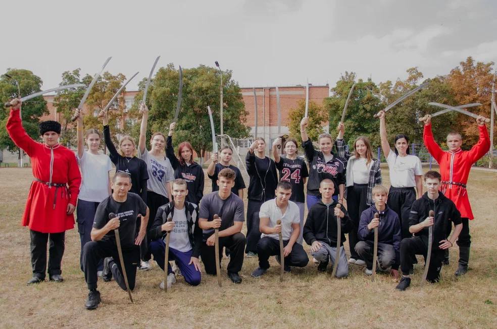 В Динском механико-технологическом техникуме состоялись очередные занятия по фланкировке, организованные казаками Динского РКО.