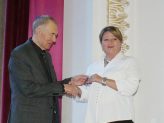 На фото: Сергей Орлов вручает партийный билет Юлии Овчаровой, воспитателю детского сада № 3.