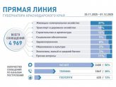 С 25 ноября по 1 декабря жители Краснодарского края направили 4969 обращений. Вопросы присылают чаще всего через чат-бот – 50%. По телефону центра обработки сообщений принято 38%, через портал «Госуслуги» – 12%.