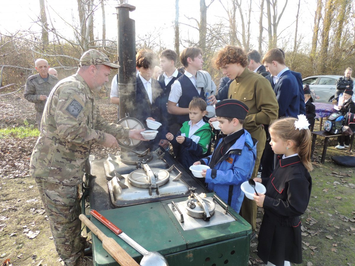 Под звуки песен военных лет общими усилиями был высажен сад Победы, а потом на казачьем стане гостей угощали солдатской кашей. Всем участникам акции были вручены благодарственные письма.