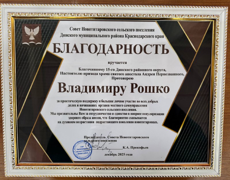 «Мы признательны Вам за сотрудничество и единство в вопросе популяризации здоровго образа жизни, что благоприятно сказывается на духовном возрастании подрастающего поколения новотитаровцев», – заключил председатель Совета.