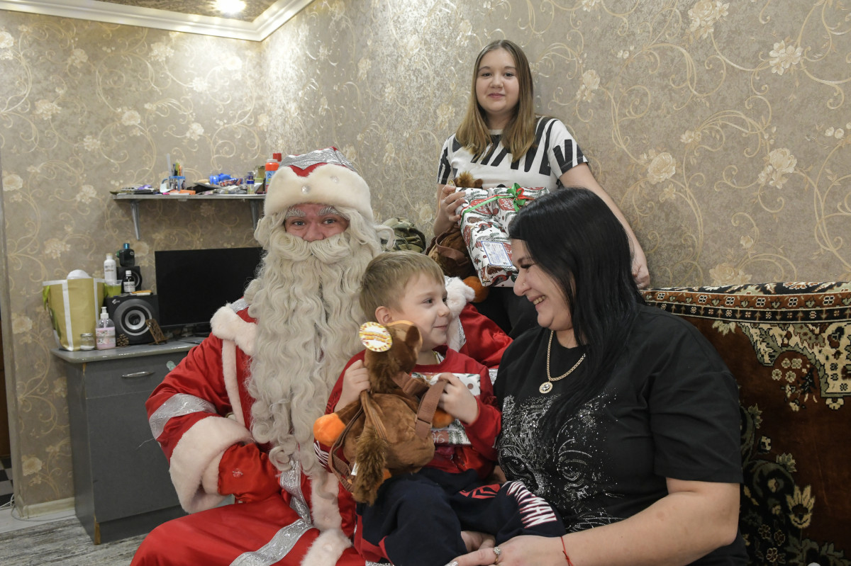 Подарки от губернатора Дед Мороз и Снегурочка привезли и 11-летнему Родиону, который болен аутизмом. Папа Родиона сейчас проходит реабилитацию после тяжелого ранения в зоне боевых действий. Мальчику вручили набор сладостей и передали утяжелительный жилет – с помощью такого приспособления ему будет легче сконцентрироваться во время занятий.