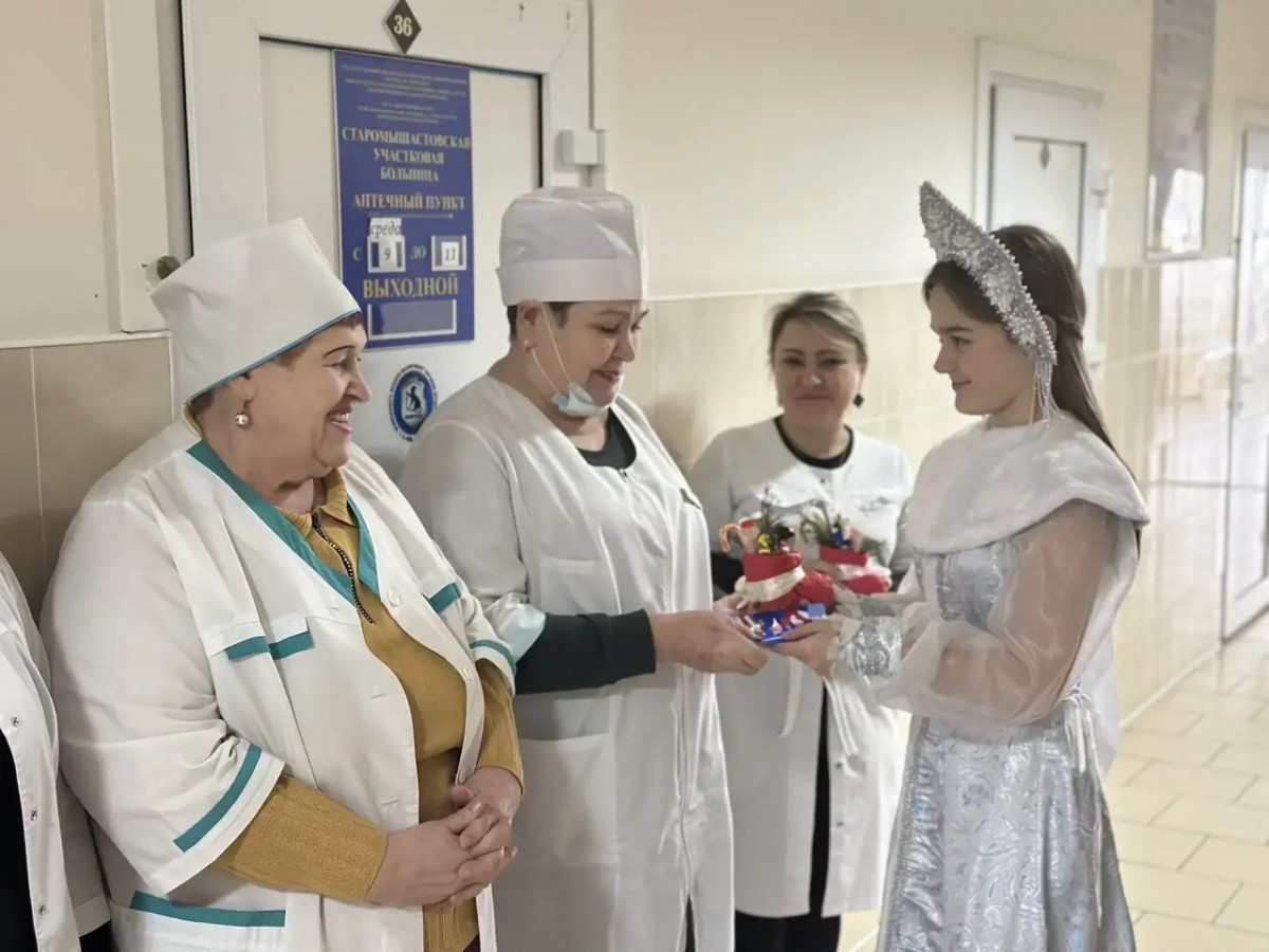 Участники первичного отделения Всероссийского движения детей и молодежи «Движение Первых» школы № 37 им. П. И. Еременко поздравили с предстоящими новогодними праздниками врачей и медсестер и вручили им подарки, сделанные своими руками.