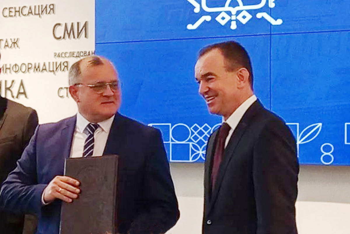 В завершении встречи Вениамин Кондратьев вручил награды лучшим сотрудникам отрасли, отрадно, что в их числе и Виталий Ушков, главный редактор газеты «Трибуна», отмеченный Почетной грамотой администрации Краснодарского края.