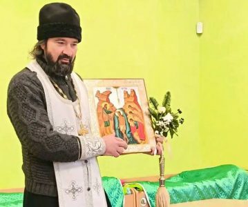 Батюшка рассказал детишкам о празднике Крещения Господня, окропил их и воспитателей, а также помещения садика святой водой.