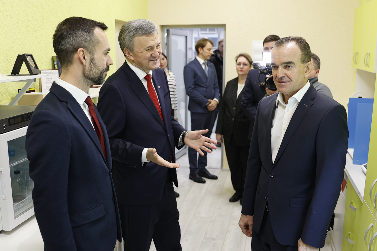 В лаборатории современных литиевых технологий губернатору представили технологическое решение по выделению металла из подземных вод, насыщенных микроэлементами. Сырьем для исследований являются воды не только Азово- Кубанского бассейна, но и Восточной Сибири, Мурманской области. Литий используют во всех современных устройствах, но его производят в мире всего три страны, и Россия может стать четвертой. В целях реализации стратегии развития минерально-сырьевой базы Российской Федерации на базе КубГУ уже ведут разработку эффективных промышленных технологий извлечения лития внутри страны и на международном уровне совместно с учеными Республики Чили.