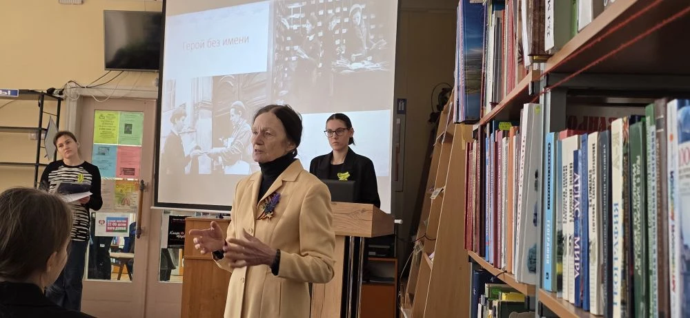 Урок мужества дополнили выступления участниц театральной студии «Фантазия» Марии Кузяниной и Яны Лесных со стихами о блокадном Ленинграде, а также рассказы Галины Алексеевны Федосовой о Нине Александровне Горюновой и Ларисы Павловны Перемитиной – о блокадном Ленинграде.