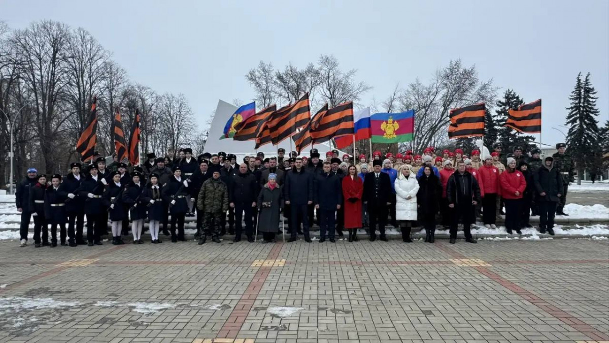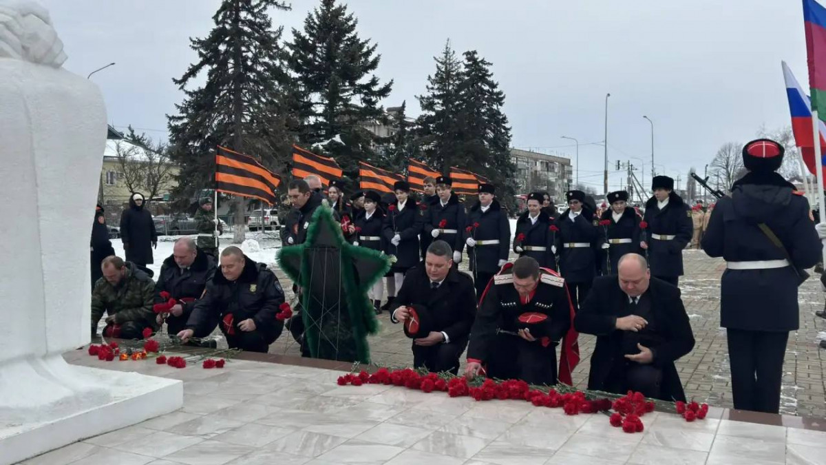 В день 82-й годовщины полного освобождения Ленинграда от фашистской блокады казаки Динского районного казачьего общества приняли участие в торжественной церемонии возложения цветов.
