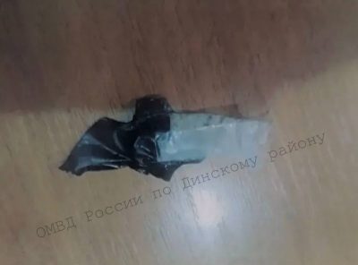 Мужчина был доставлен в отдел МВД России по Динскому району. В ходе личного досмотра, в присутствии понятых у задержанного был обнаружен и изъят свёрток с белым порошком.