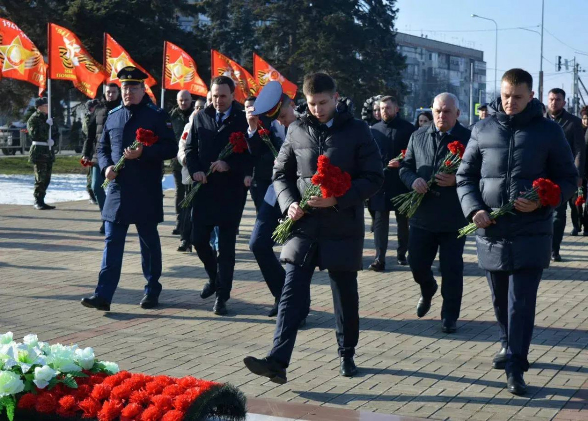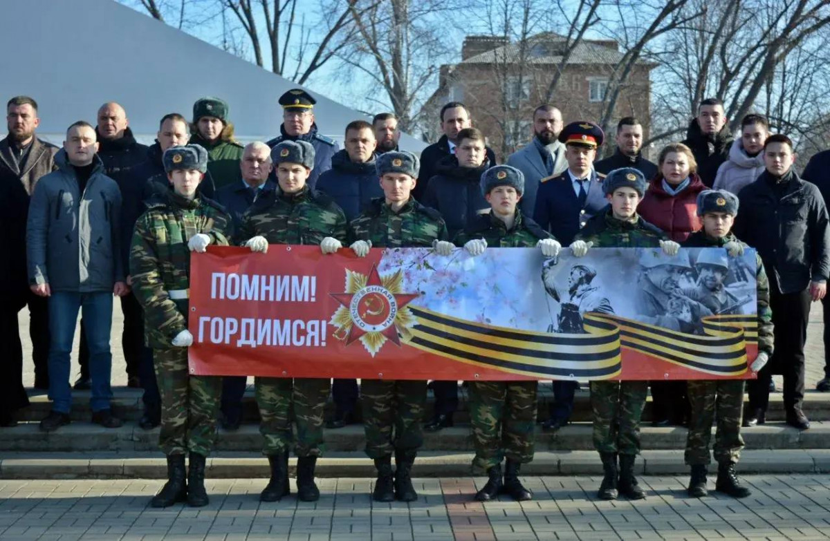 Минутой молчания была почтена память погибших, после чего к подножию монумента Скорбящей матери были возложены траурная гирлянда и живые цветы. Почетную вахту памяти на Посту №1 несли воспитанники СОШ №2 имени А.В. Суворова.