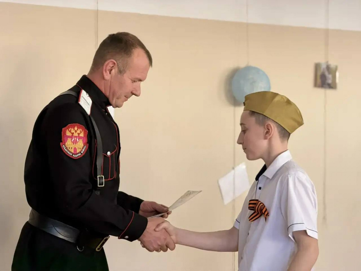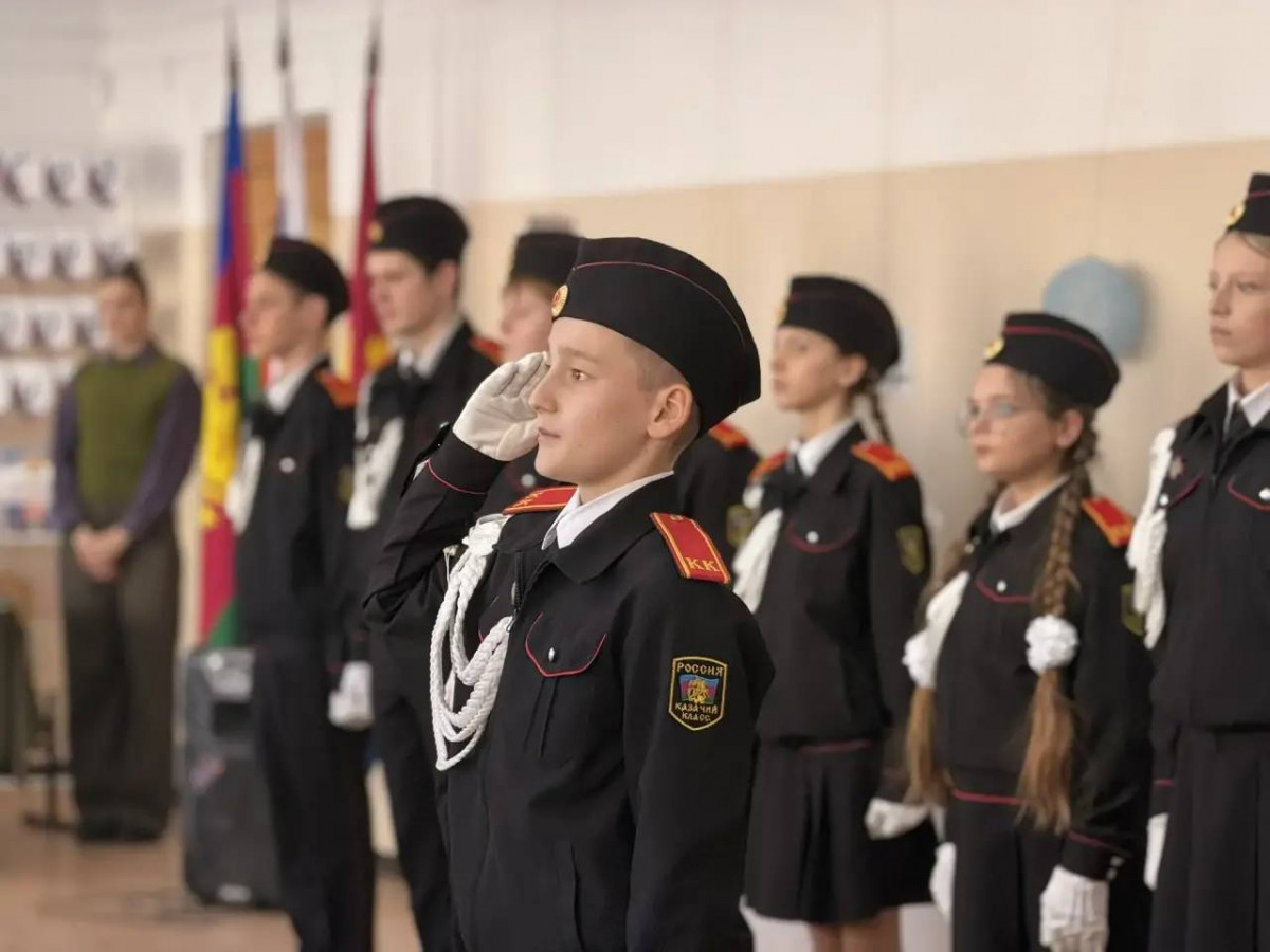 Казаки-наставники во главе с атаманом Динского хуторского казачьего общества Виталием Бакуменко провели для школьников мастер-класс по строевой подготовке, показав основные элементы маршировки и правильного исполнения команд.