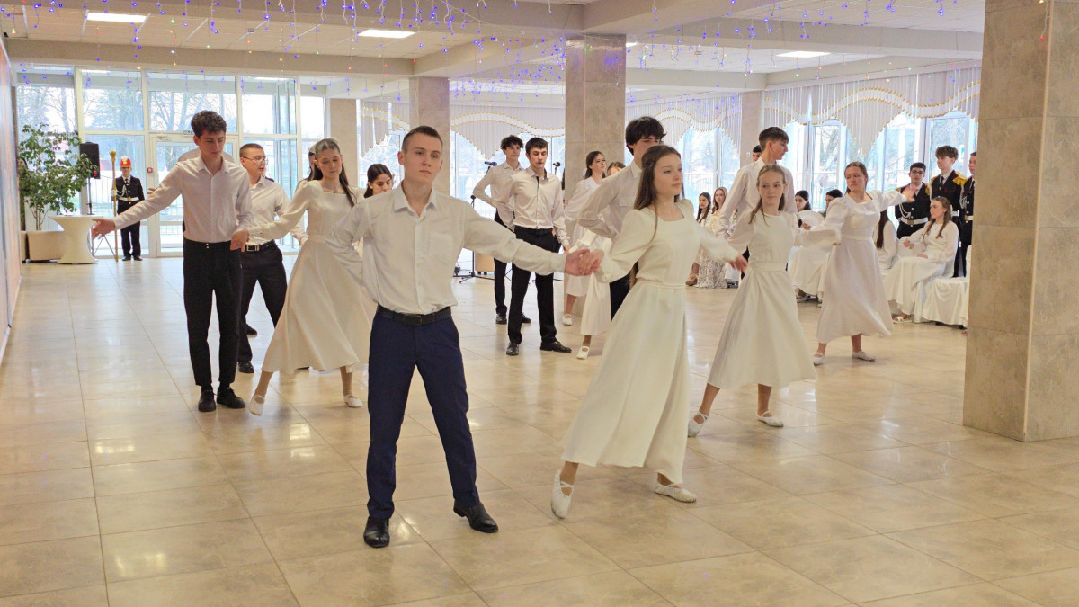 Участники постарались воссоздать дух исторической эпохи: девушки были одеты в великолепные светлые платья, а юноши-школьники предстали в образе гусар и офицеров.