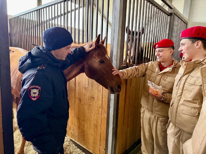 Стражи правопорядка отметили, что конный взвод это важная составляющая полка, необходимая для обеспечения охраны общественного порядка в дачных поселках, в прилегающих к стадионам лесопарковых зонах во время футбольных матчей, а также в местах проведения иных массовых мероприятий. Полицейские ознакомили юнармейцев со всеми нюансами содержания, воспитания и дрессировки четвероногих помощников.