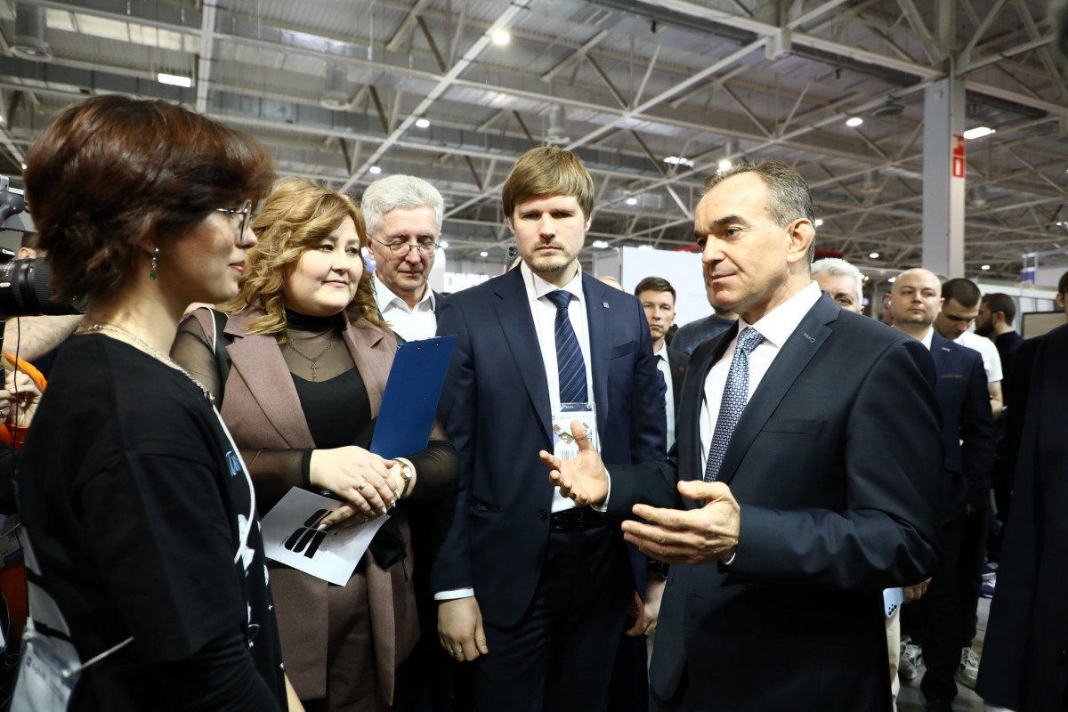 На выставке стройматериалов Вениамин Кондратьев оценил возможности региональных производителей: кирпича из Новокубанского района, лифтов из Крымского района, железобетонных изделий из Белореченского района, тротуарной плитки из ст. Елизаветинской Краснодара, игровых комплексов для детских площадок.