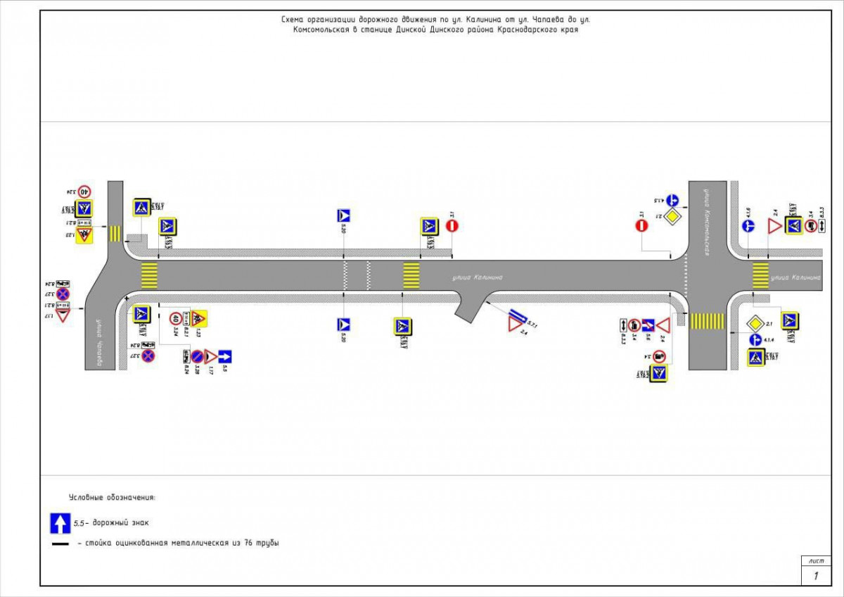 по ул. Калинина — на участке от ул. Чапаева до ул. Комсомольской (ст-ца Динская, Динской район, Краснодарский край).