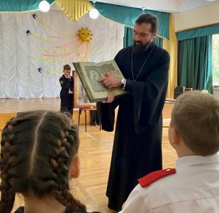Батюшка провёл две встречи с учащимися младших и старших классов на тему Дня Православной книги. В ходе беседы отец Павел познакомил детей с историей книгопечатания на Руси.