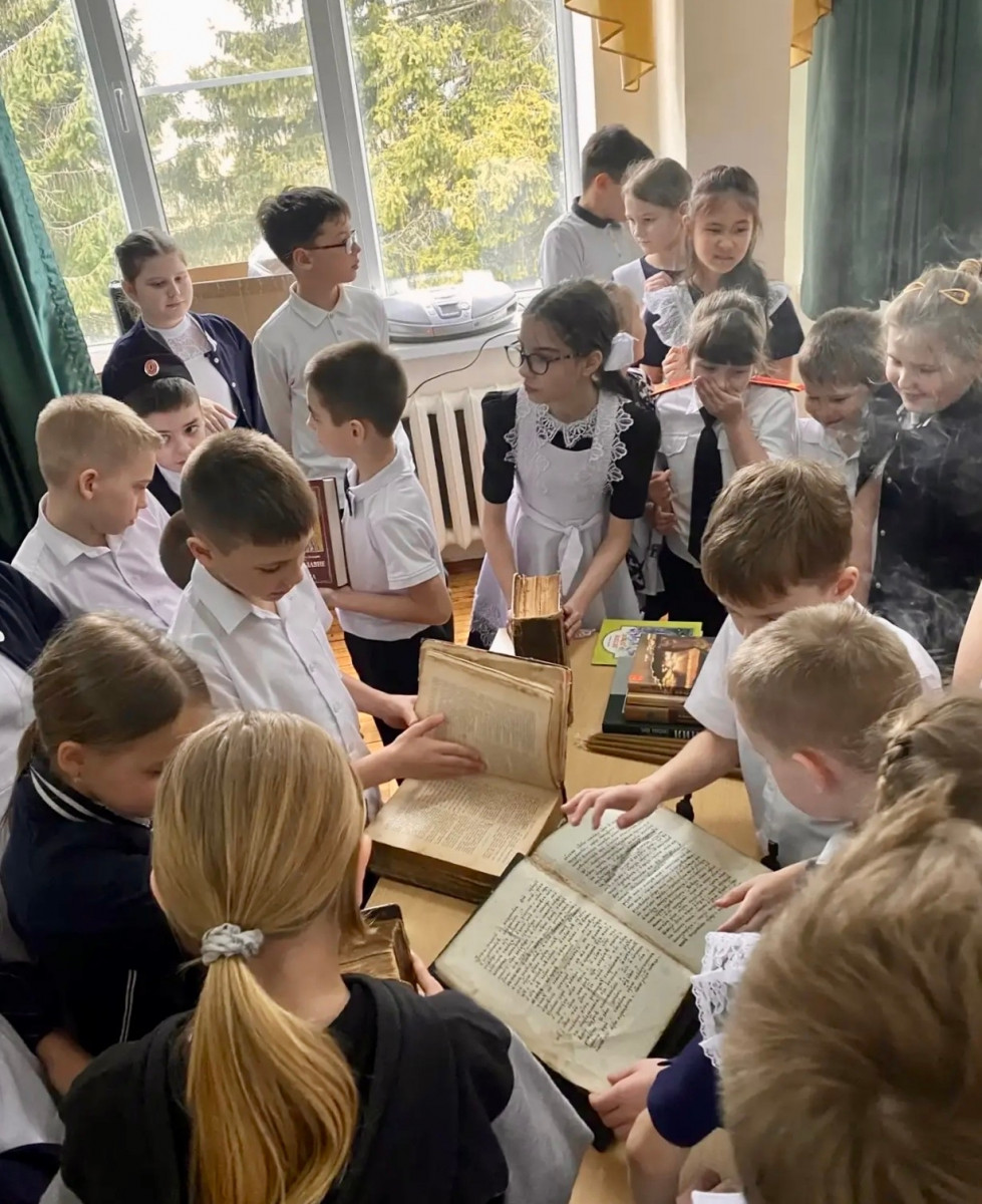 Ребятам было особенно интересно не только слушать о старинных книгах, но и вживую увидеть и прикоснуться к таковым — батюшка принёс несколько старинных богослужебных книг XIX века.