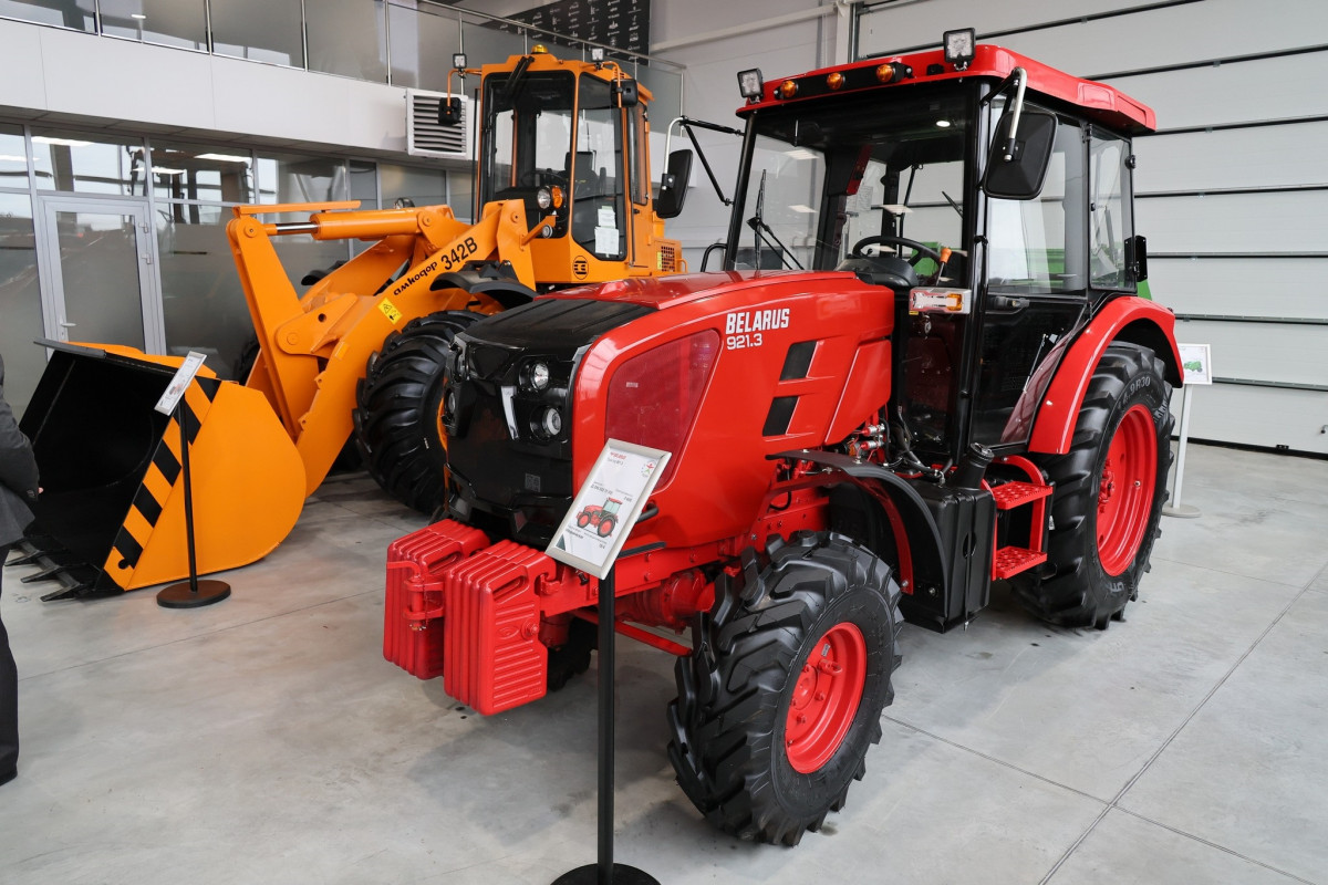 В мультибрендовом центре продаж и сервисного обслуживания Вениамин Кондратьев и Андрей Кузнецов осмотрели представленную технику. Всего здесь 15 белорусских брендов, в том числе «Гомсельмаш», «Минский тракторный завод», «Бобруйскагромаш», «Минский автомобильный завод», «Амкадор», «ГЗЛиН», «Минский моторный завод», «Минский завод шестерен», «Мотовелозавод», «Лидсельмаш», «Белшина». Они производят трактора, комбайны для уборки зерновых культур, картофелекопатели, мотоциклы, погрузчики и другую технику.